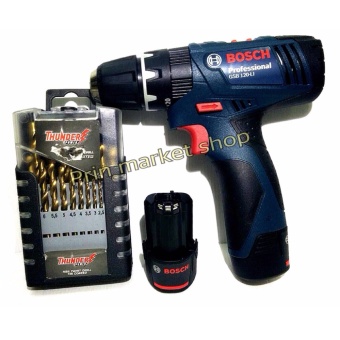 BOSCH สว่าน/ไขควงกระแทกไร้สาย 12V รุ่น GSB 120-LI (แบต 2 ก้อน) +THUNDER ดอกสว่านเจาะเหล็ก อลูมิเนียม ไฮสปีด 1-10mm. 19 ดอก / ชุด