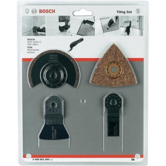 รายละเอียดของสินค้า BOSCH ชุดเครื่องมืองานกระเบื้อง4ชิ้น รหัส 2608661695 - สีดำ BOSCH ชุดเครื่องมืองานกระเบื้อง4ชิ้น รหัส 2608661695 คุณสมบัติ - ชุดเครื่องมืองานกระเบื้องต่างๆทั้งงานซ่อมแซมและงานก่อสร้าง - การเซาะรอยต่อกระเบื้องปูพื้นและผนัง การขูดคราบปูนสอหรือกาวติดกระเบื้อง - เหมาะสำหรับ Bosch GOP 10.8V- LI,GOP 250 CE Professional,PMF 10.8 LI,PMF 180E,Fein Multimaster FMM 250 - เหมาะสำหรับเครื่องตัดอเนกประสงค์ที่มีจำหน่ายทั่วไปในท้องตลาด โดยใช้ร่วมกับอะแดปเตอร์อเนกประสงค์